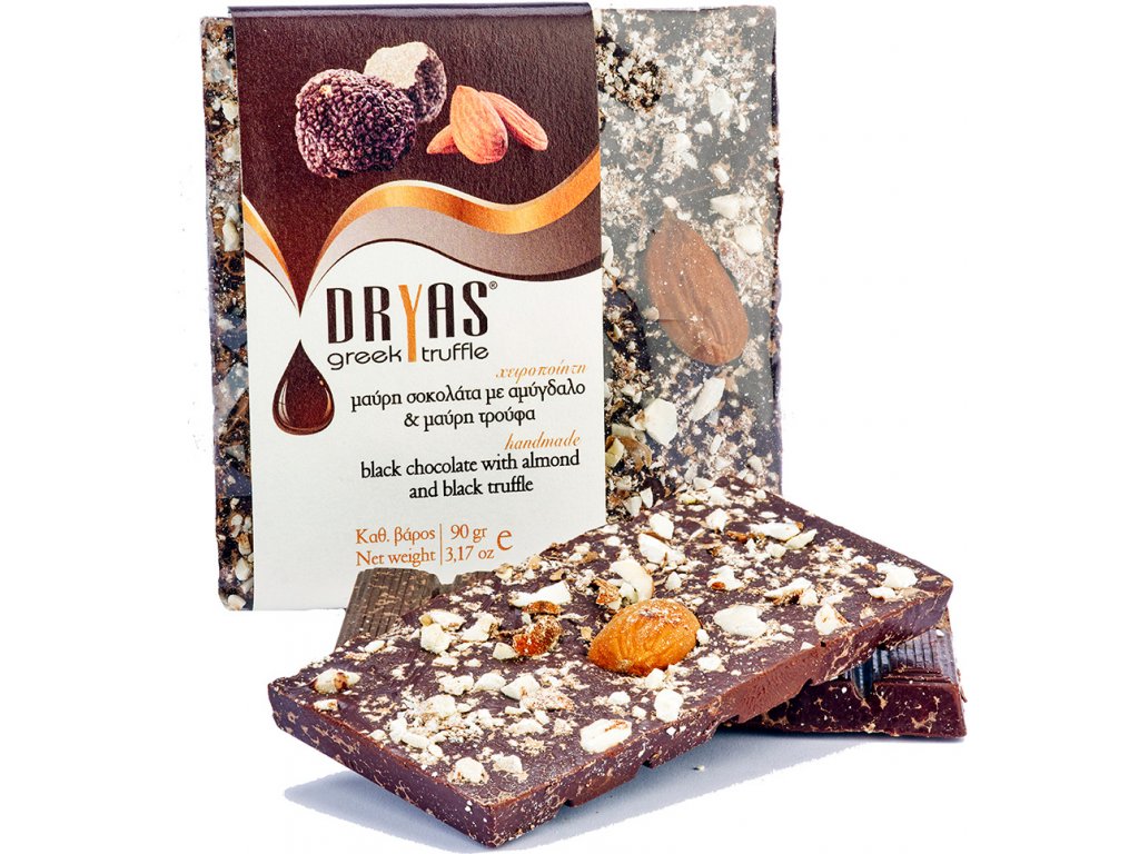 Složení: hořká čokoláda 88% (kakaová hmota, cukr, kakaové máslo, sojový lecitin, vanilín, kakaová sušina min 56%), mandle 13%, sušený letní černý lanýž (Tuber oestivum) 0,4%, lanýžové aroma. Černý letní lanýž se vyskytuje od května do září.
