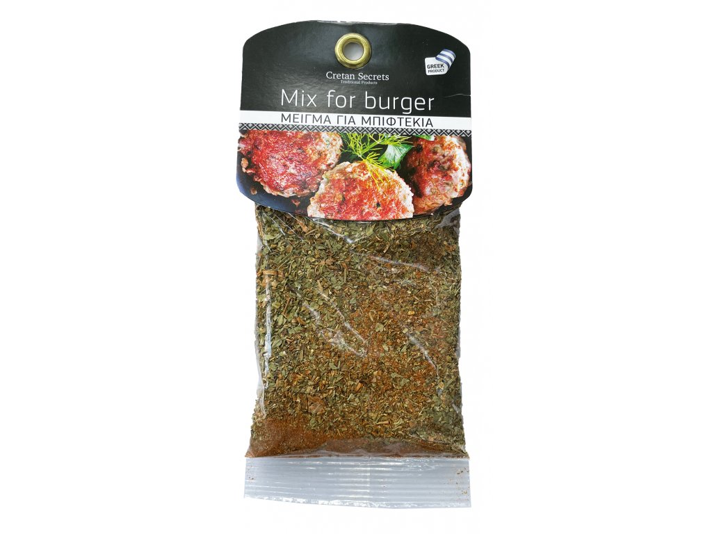 Recept: 1kg mletého masa, 1 velkou cibuli, 1 vejce, půl hrnečku olivového oleje, 1 hrneček rozdrcených dakos (sucharů) a 1 lžičku koření. Promíchejte, vytvořte burgery a upečte na grilu.