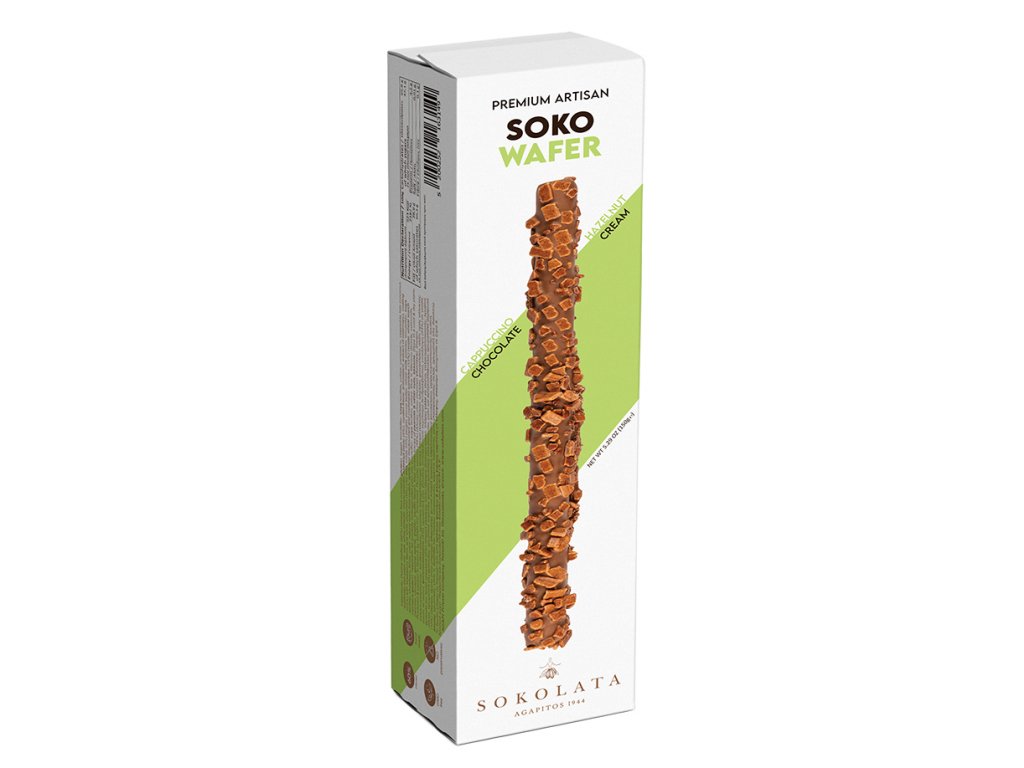 Složení: pralinková oplatka (pšeničná mouka, cukr, sojový lecitin, barvivo karamel IV, rostlinné oleje - kokosový, slunečnicový, palmový, sůl, syrovátka, kakaový prášek, lískooříšková pasta, vanilín, výtažek z rozmarýnu, mléčná a bílá čokoládová poleva s kávou (cukr, kakaové máslo, plnotučné sušené mléko, kakaová hmota, káva, sojový lecitin), přírodní vanilková příchuť, cappuccino (cukr, mléko, kakaová hmota, palmový olej, kukuřičný škrob, káva, sojový lecitin). GMO free, bez konzervantů.