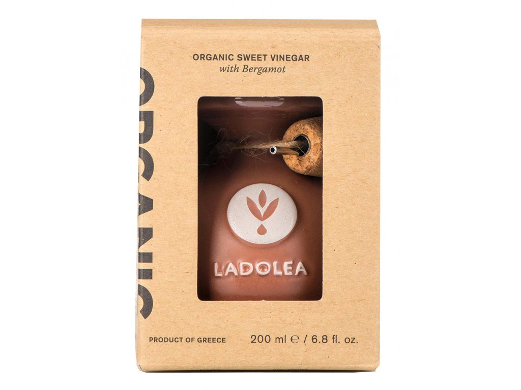 Ladolea ocet je balen v ručně vyrobené keramické nádobě. Inspirace pochází z bohaté historie řeckého regionu Corinthos. Podobné nádoby byly vyráběny již v roce 700 před Kristem a nazývají se Aryballos. Tato nádoba byla používána mimo jiné olympijskými atlety, kteří v ní uchovávali olivový olej, jímž se potírali. Stejně tak bohatí aristokraté v Aryballos nádobách uchovávali hodnotné esenciální oleje a aromata. Společnost Ladolea změnila design nádoby Aryballos a vytvořila tak úžasnou kombinaci antického a moderního designu. Nádoba je praktická pro servírování octa a samozřejmě splňuje veškeré normy a certifikace. Nádoby jsou vyráběny exkluzivně pro Ladoleu.